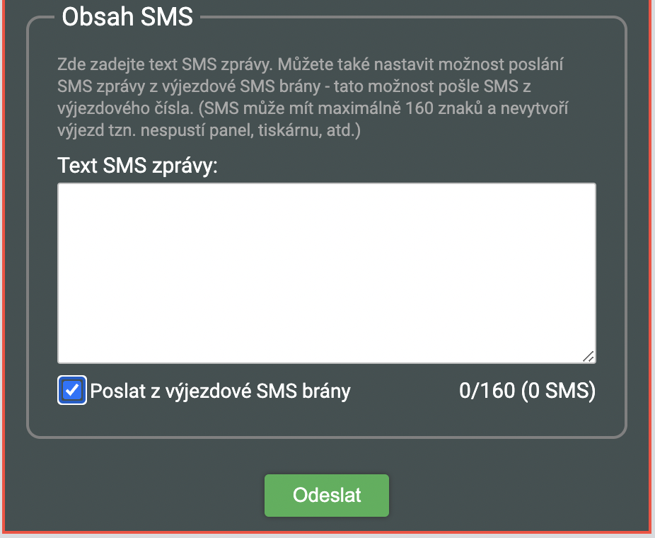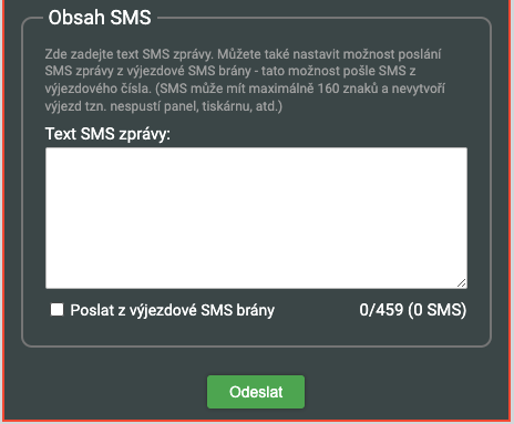 Zaškrtnete-li tuto možnost, je tato SMS odeslána prioritně a telefonům se bude hlásit jako SMS z poplachového identifikátoru = telefony hasičů budou hlásit, že je poplach, mají-li na poplachový identifikátor nastaveny poplachové profily. V případě této volby se počet znaků v SMS zkrátí na max. 160